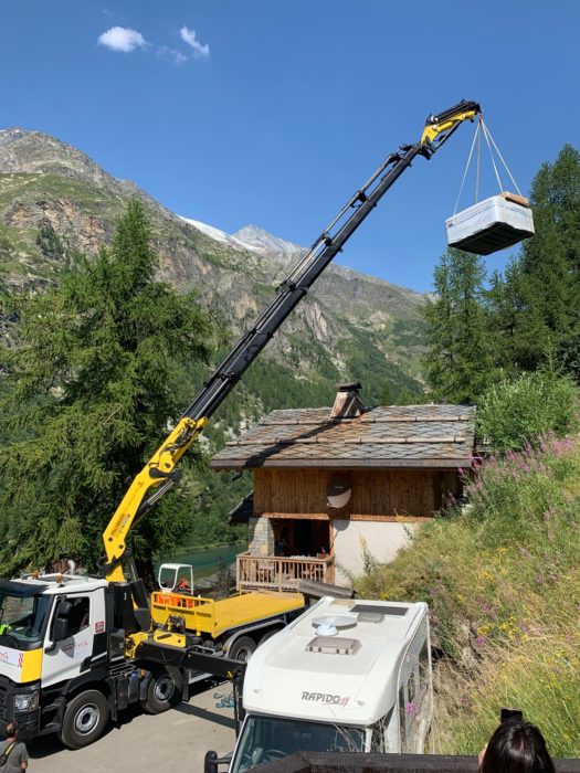 Action shots of the hot tub installation on the new terrace of Chalet Sundance in plenty of time for the winter!