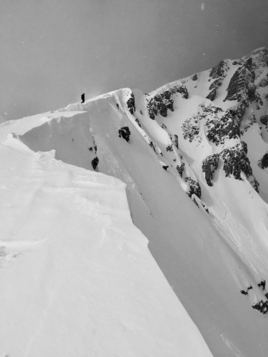 Throwback to last winter, 2018/2019, which saw some amazing snow conditions in Tignes. Here the rider is about to drop into one of the West-facing couloirs of the Chardonnet bowl.Â